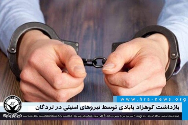کوهزاد بابادی، شهروند اهل لردگان روز پنجشنبه ۲ بهمنماه پس از حضور در اداره آگاهی نیروی انتظامی این شهرستان بازداشت و به بازداشتگاه اطلاعات سپاه منتقل شده است. آقای بابادی با احضار قبلی به اداره آگاهی لردگان مراجعه کرده بود.
