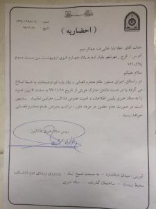 بر اساس این گزارش، پرونده جدیدی از بابت اتهام برهم زدن امنیت کشور، در تاریخ ۲ بهمنماه، توسط دادسرای انقلاب کرج برای او گشوده است. در این احضاریه از این شهروند خواسته شده که طی مدت پنج روز در ستاد خبری پلیس اطلاعات و امنیت شهرستان کرج حاضر شود.