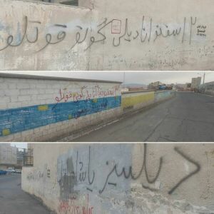 از جمله گرافیتی و متون دیوار نویسی های اعتراضی می توان به “زبان من حقیقت را میگفت، مرا بی زبان گذاشتند” اشاره کرد.