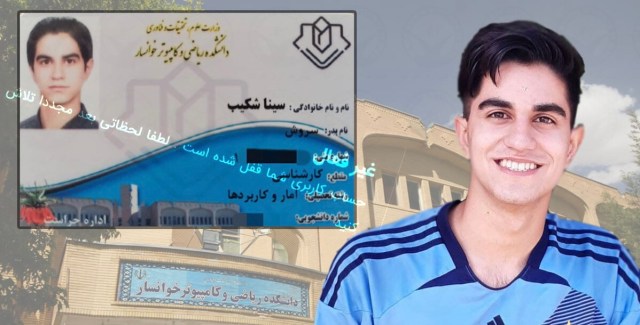 سینا شکیب، متولد ۱۳۸۰ و دانشجوی ترم ۴ رشته آمار و کاربرد ها در دانشگاه اصفهان-دانشکده ریاضی و کامپیوتر خوانسار بوده است.