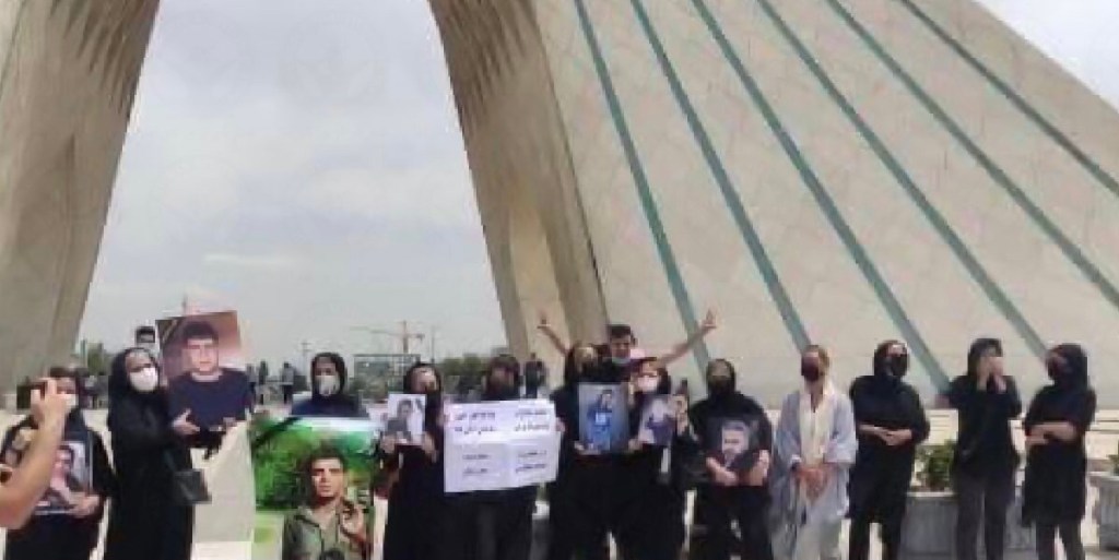 ساعت ۱۲ ظهر روز جمعی از خانوادههای جانباختگان اعتراضات آبانماه ۹۸، با در دست داشتن پلاکارد و تصاویری از فرزاندانشان در میدان آزادی تهران دست به تجمع اعتراضی زدند. آنها در جریان این تجمع ضمن دادخواهی خون فرزندانشان از اعتراضات مردم خوزستان نیز حمایت کردند. در جریان این تجمع، تعدادی از شرکت کنندگان از جمله سکینه احمدی مادر ابراهیم کتابدار به همراه پسرش علی کتابدار و فرزند دیگرش، همچنین محبوبه رمضانی مادر پژمان قلی پور، مهناز کریمی مادر وحید دامور، صدیقه تورانی مادر فرهاد مجدم، فیروزه معظمی گودرزی مادر رضا معظمی گودرزی توسط نیروهای امنیتی بازداشت شدند.