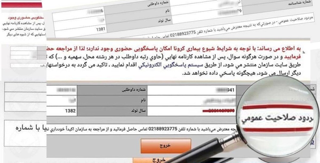 در پی تماس یکی از این شهروندان با سازمان سنجش، دخالت وزارت اطلاعات دلیل صدور پیغام مردود عنوان شده و به او گفته شده است در صورت اعتراض به صورت کتبی آن را به سازمان سنجش اعلام کرده و آنها به وزارت اطلاعات ارجاع خواهند داد.