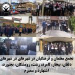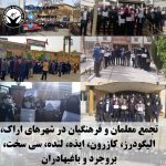این معلمان در پی فراخوان شورای هماهنگی تشکلهای صنفی فرهنگیان ایران در شهرهای مختلف کشور از جمله میاندواب، خلخال، قصر شیرین، مهدی شهر، لردگان، اندیمشک، ابرکوه، چالوس، لنگرود، دمق، سنقر و کلیایی، سجاسرود، باینگان، سردشت، مشهد، ثلاث باباجانی، مرند، بابل، نکا، کوهدشت، آمل، تاکستان، پلدختر، کرج، قزوین، سنندج، گچساران، گرگان، دیواندره، هرسین، گیلان غرب، زرین شهر، بانه، ملایر، شبانکاره، نجف آباد، دهدشت، اردبیل، قم، دشتستان، گراش، چاروسا، قلعه رئیسی، بوشهر، شهرکرد، اصفهان، ساری، ایلام، دلفان، بیجار، لامرد، رشت، رومشکان، بجنورد، اشتهارد، بافق، سمیرم، اراک، الیگودرز، کازرون، ایذه، لنده، سی سخت، بروجرد، باغبهادران، یاسوج، زنجان، داراب، شوش دانیال، بهشهر، شهرضا، آبدانان، ارسنجان، شوشتر، چادگان، اهواز، خرم آباد، فسا، نوشهر، نورآباد، سقز، جوانرود، شیراز، کرمانشاه، ارومیه، شاهین شهر، خرمشهر، اقلید، مریوان، همدان، یزد و تبریز در مقابل ساختمان اداره آموزش و پرورش شهرهای خود و معلمان ساکن تهران در مقابل ساختمان مجلس شورای اسلامی، دست به تجمع اعتراضی زدند.