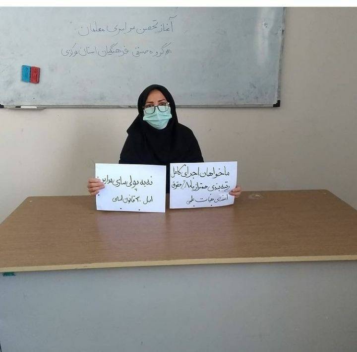 فاطمه بهمنی فعال صنفی معلمان، امروز یکشنبه ۱۱ اردیبهشت توسط نیروهای امنیتی در منزلش شخصی خود بازداشت و به مکان نامعلومی منتقل شد. ماموران ضمن تفتیش منزل وی، شماری از وسایل شخصی او و خانواده اش از جمله گوشی و لپتاپ را ضبط کرده و با خود برده اند.