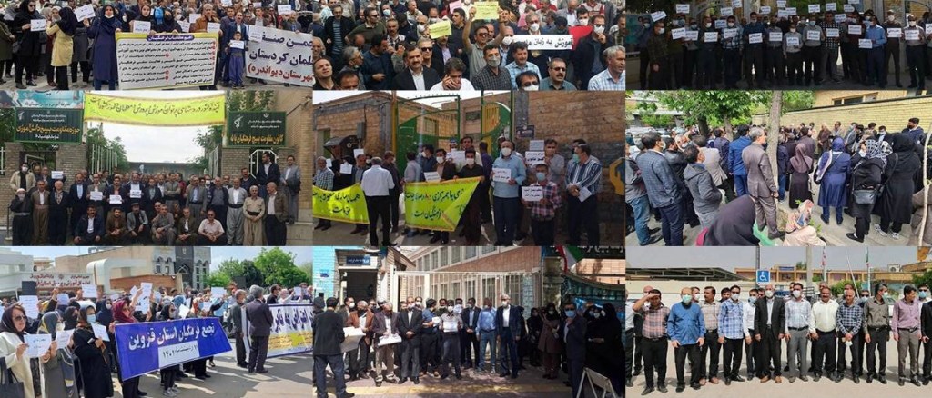 در آستانه هفته معلم در ایران، معلمان و فرهنگیان شاغل و بازنشسته کشور در اعتراض به عدم رسیدگی به مطالباتشان در مقابل ادارات آموزش و پروش در بیش از ۴۰ شهر از جمله شیراز، خمینی شهر، نورآباد، سقز، کرمانشاه، اراک، الیگودرز، کرج، اصفهان، یزد، هرسین، دلفان، دهدشت، لنگرود، شوشتر، دهگلان، یاسوج، بوشهر، گچساران، شهرضا، اردبیل، لاهیجان، تبریز، ایذه، سنندج، قزوین، خرم بید، تربت حیدریه، تنکابن، رستم، نیشابور، بوکان، مسجدسلیمان، قیر و کارزین، اهواز، رشت، بجنورد، اسلامآبادغرب، دیواندره، مهریز، بندرماهشهر، بانه، داراب، کامیاران و معلمان ساکن تهران به دلیل حضور پرشمار نیروهای امنیتی خیابان های منتهی به مجلس و وزارت آموزش و پرورش در برخی از پارک های این شهر، دست به تجمع اعتراضی زدند. همچنین این تجمعات در شهرهایی چون بوشهر و مریوان با دخالت نیروی انتظامی به خشونت کشیده شد.