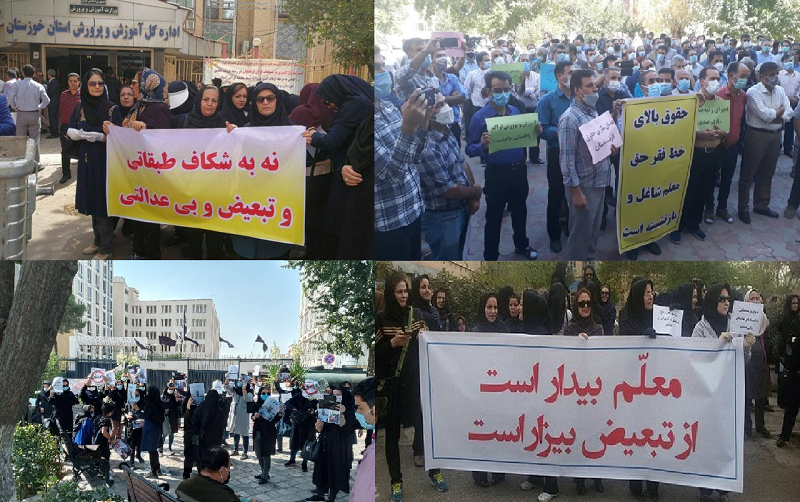 بر اساس گزارشات گردآوری شده توسط هرانا، طی دو ماه گذشته تجمعات اعتراضی معلمان و فعالان صنفی فرهنگیان در شهرهابی از جمله یاسوج، دلفان، خرم آباد، ساری، شهرکرد، زنجان، اردبیل، الیگودرز، رشت، اهواز، کرمانشاه، ملایر، بابل، رضوانشهر، هرسین، بیجار، آبدانان، اسلام آباد غرب، مرند، سردشت، کرج، اندیمشک، شهرکرد، همدان، ساری، کاشمر، سنندج، بوکان، مریوان، سقز، ارومیه، یزد، اصفهان، کامیاران، دیواندره، جلفا، شیراز، خمینی شهر، نورآباد ، اراک، دهدشت، لنگرود، شوشتر، دهگلان، بوشهر، گچساران، شهرضا، لاهیجان، تبریز، ایذه، قزوین، خرم بید، تربت حیدریه، تنکابن، رستم، نیشابور، مسجدسلیمان، قیر و کارزین، بجنورد، مهریز، بندرماهشهر، بانه، داراب، تهران، آمل، فسا، نجفآباد، زاهدان، تاکستان، قم، کوهدشت، پلدختر، بهمئی، شوش، بروجرد، سیرجان، سنقر و کلیایی، زرین دشت، کازرون، فیروزآباد، مشهد، شیروان، ملارد و برازجان صورت گرفت.